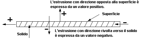 L'estrusione di un tetto può estendersi in direzione positiva o negativa lungo il piano perpendicolare alla superficie di un componente solido, ad esempio un muro.