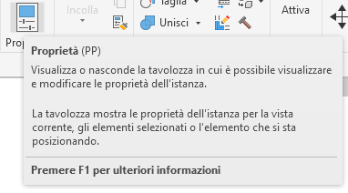 In Revit, quando si posiziona il cursore su uno strumento della barra multifunzione, viene visualizzata per default una descrizione del comando. La descrizione del comando fornisce informazioni sullo strumento. Se si mantiene il cursore sulla barra multifunzione ancora per qualche istante, vengono visualizzate eventuali informazioni aggiuntive. Quando è visualizzata la descrizione di un comando, è possibile premere F1 per accedere alla sezione della Guida in linea relativa allo strumento specifico.