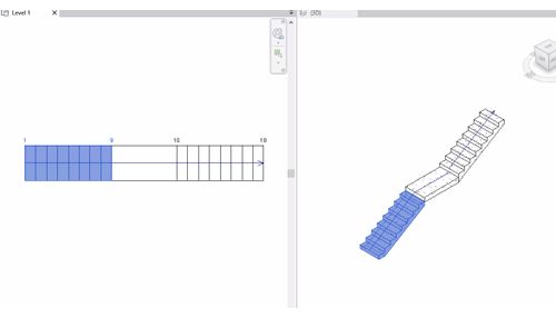 La modifica delle opzioni Inizia con alzata e Termina con alzata consente di modificare l'altezza della rampa. È possibile utilizzare i controlli di manipolazione diretta per aggiungere o rimuovere gradini in base alle necessità per mantenere l'altezza originale della scala.