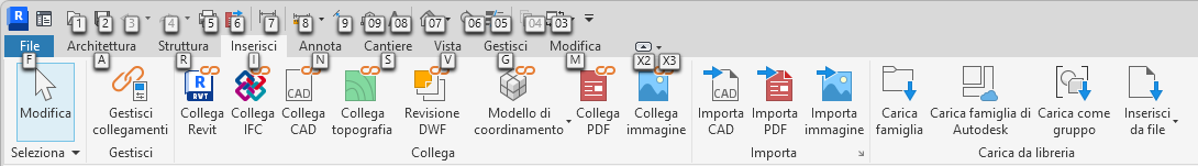 È possibile utilizzare le indicazioni del tasto per spostarsi all'interno della barra multifunzione: per attivare una scheda della barra multifunzione e visualizzare le indicazioni del tasto dei rispettivi pulsanti e comandi, è sufficiente digitare l'indicazione del tasto della scheda. Nell'esempio precedente, digitare N per visualizzare la scheda Annota.