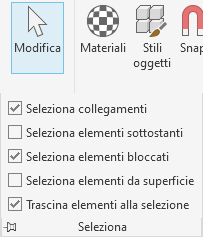Seleziona elementi bloccatiL'opzione Seleziona elementi bloccati consente di selezionare gli elementi bloccati che non possono essere spostati.