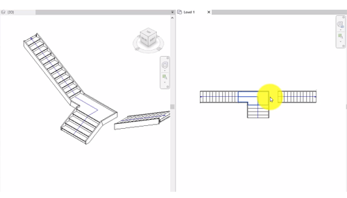 Disegnare 2 rampe diritte per raggiungere il livello successivo. Il pianerottolo viene creato automaticamente per connettere le due rampe.