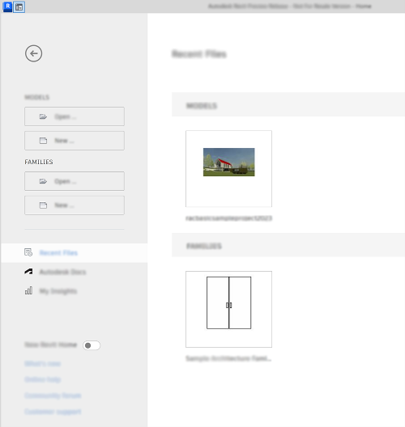 Dalla pagina Inizio di Revit, è possibile visualizzare e gestire i modelli memorizzati in Autodesk Docs.
