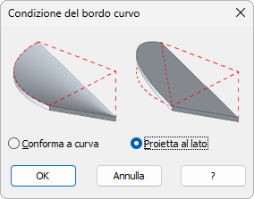 - Selezionare Conforma a curva per curvare la superficie smerlata oppure Proietta al lato per ottenere un superficie piatta.