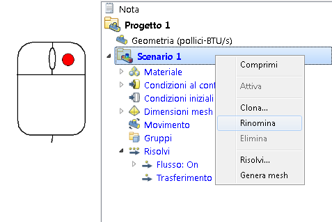5. Sulla Barra Studio di progettazione, fare clic con il pulsante destro del mouse su Scenario 1, quindi scegliere Rinomina.