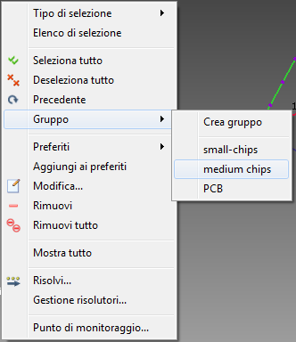 Nella finestra grafica, fare clic con il pulsante destro e selezionare Gruppo. Selezionare il gruppo Chip medi.