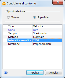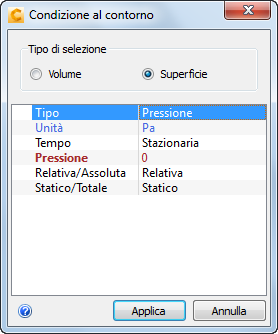 Il modello contiene una condizione al contorno di velocità, due di temperatura e una di pressione.