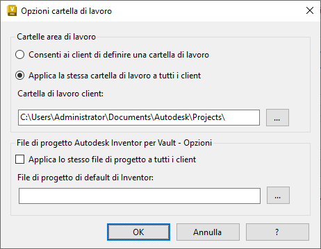 L'amministratore di sistema definisce una cartella di lavoro in un percorso di rete condiviso che deve essere utilizzata da tutti i membri del progetto.