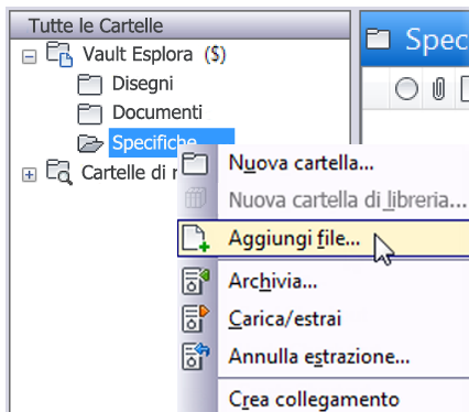 È possibile aggiungere file ad un Vault utilizzando il comando Aggiungi file nel client di Vault.