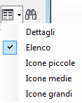 Consente di scegliere se visualizzare i file con i dettagli, come un elenco o come icone piccole, medie o grandi.