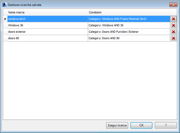 Si apre la finestra di dialogo Gestione ricerche salvate.