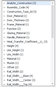 La griglia visualizza tutti i tipi di famiglia associati al file selezionato. Nell'elenco dei parametri disponibili viene visualizzato un elenco di parametri per i tipi di famiglia della griglia.