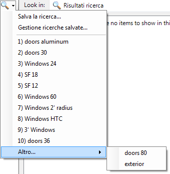 Fare clic sulla freccia a discesa accanto alla casella di testo della ricerca, quindi selezionare la ricerca salvata da caricare.