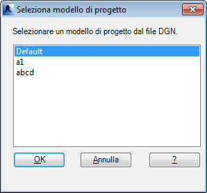 Selezionare un modello di progetto dall'elenco dei modelli DGN e fare clic su OK per completare il collegamento o l'importazione del file DGN.
