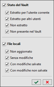 È anche possibile selezionare Stato del Vault o File locali per selezionare tutte le opzioni della categoria.
