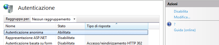 Fare clic su Autenticazione anonima e assicurarsi che sia attivata.