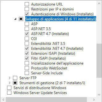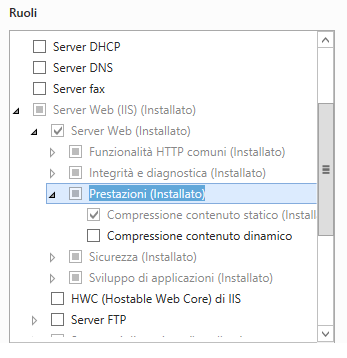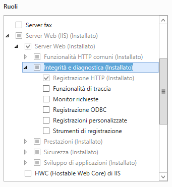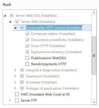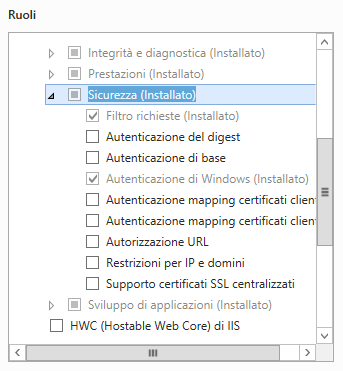 Nella sezione dei ruoli del server, selezionare i seguenti ruoli: