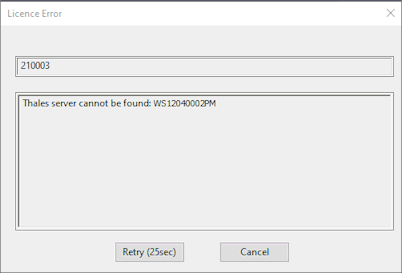 Se si verifica un problema di accesso alla licenza Innovyze, verrà visualizzata una finestra di dialogo. Ciò potrebbe essere dovuto al fatto che, ad esempio, un firewall impedisce l'accesso ad ILA oppure non è possibile trovare un server che ospita la licenza Innovyze. Un esempio è visualizzato di seguito.