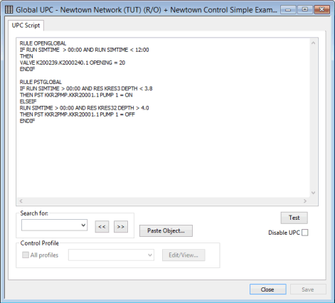 Per default, l'impostazione della casella Disabilita UPC è deselezionata. Selezionare la casella Disabilita UPC per ignorare i controlli definiti nello script globale UPC durante una simulazione. |