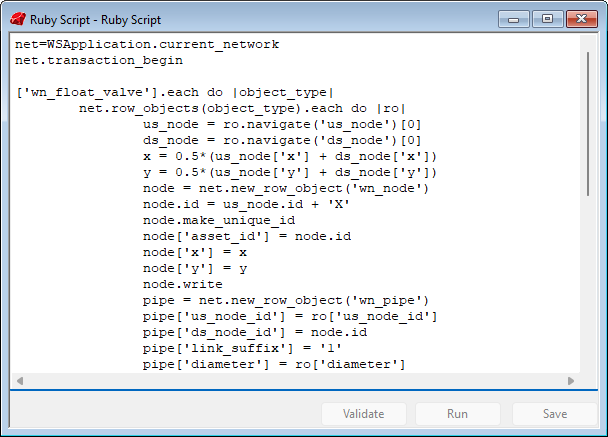 Questo editor consente inoltre di convalidare la sintassi dello script Ruby e di eseguirlo nella rete corrente.