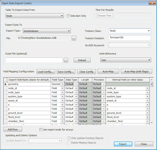 - Fare clic sul pulsante Esporta per esportare i dati da InfoWorks WS Pro alla classe oggetto specificata. Tutti i campi, ad eccezione delle chiavi di aggiornamento mappate, verranno aggiornati nella classe oggetto.