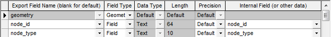 - La colonna Nome campo di esportazione contiene un elenco a discesa contenente solo i nomi dei campi della classe oggetto selezionata. Se si digita un nome inesistente, viene specificato un nuovo nome di campo.