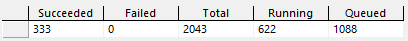 Se si seleziona la barra di avanzamento del test case e si passa alla vista Avanzamento lavoro, verrà visualizzato un conteggio aggiornato del numero di test case in coda, in esecuzione e completati.