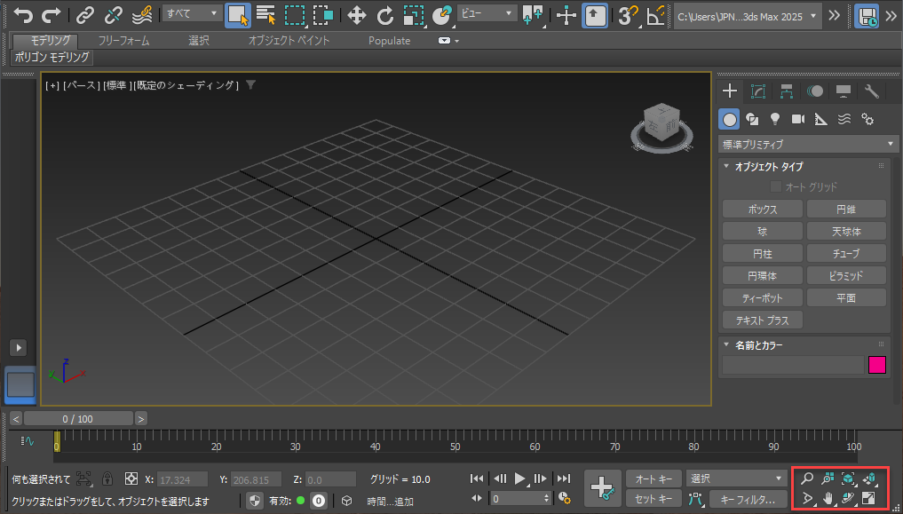 ステータス バーの右端には、ビューポートの表示とナビゲーションを制御するボタンがあります。