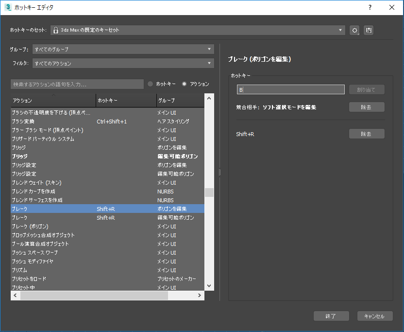 - 現在割り当てられているホットキーを除去して、選択したアクションを使用できるようにします。