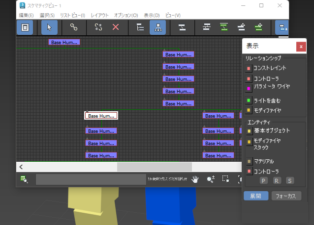 スケマティク ビューは、シーン内のオブジェクトが階層的に表示されるウィンドウです。シーン内のオブジェクトを選択したり、検索する場合に使用できます。