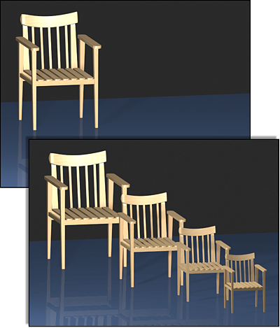 線形配列は、1 本または複数の軸方向にクローンを並べたものです。線形配列では、樹木、自動車、階段、杭垣、チェーンなどさまざまな並びを表現できます。オブジェクトやシェイプの反復が必要なシーンには、線形配列の適用を考えてください。