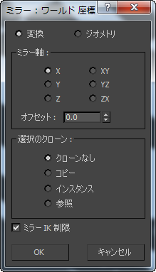 3ds Max は[ミラー](Mirror)ダイアログ ボックスを開きます。