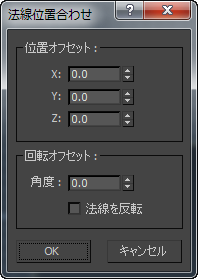 [法線位置合わせ](Normal Align)ダイアログ ボックスでは、位置合わせを調整したりキャンセルしたりすることができます。このダイアログ ボックスには、次のコントロールがあります。