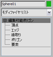 サブオブジェクト レベルでオブジェクトを編集する場合、そのレベルで選択できるのは、頂点、エッジ、ポリゴンなどのコンポーネントだけです。現在選択されているオブジェクトの選択を解除することはできません。また、他のオブジェクトを選択することもできません。サブオブジェクトの編集の途中でオブジェクトレベルの編集に戻るには、モディファイヤ スタックでトップレベルのオブジェクト名をクリックするか、ハイライト表示されているサブオブジェクト レベルをクリックします。