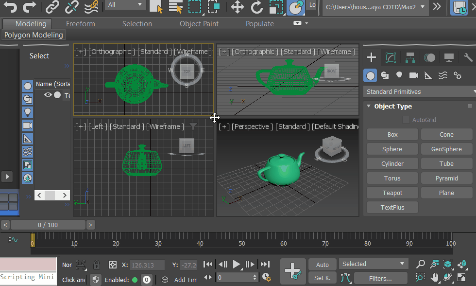[ビューポート最大化切り替え](Maximize Viewport Toggle)は、任意のアクティブ ビューポートを、標準サイズと全画面サイズに交互に切り替えます。