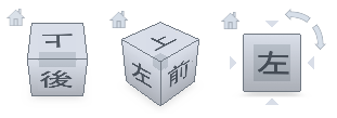 フロント ビューなどの面のビューでモデルを表示すると、回転矢印という 2 つのアイコンが ViewCube の近くに表示されます。ビューの中心を軸に、現在のビューを正方向または逆方向に 90 度回転させるには、回転矢印のいずれかをクリックします。