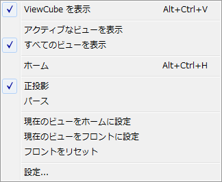 このサブメニューは ViewCube を表示および使用するためのオプションを提供します。