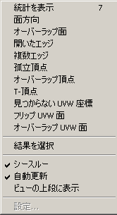 すべてのモードは、ジオメトリでも UVW でも、頂点、エッジ、面のいずれかのサブオブジェクトに関連しています。ただし、チェック結果を表示するだけであれば、サブオブジェクト レベルにアクセスする必要はありません。チェック結果は、オブジェクト レベルとすべてのサブオブジェクト レベルで表示されます。