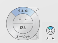 オブジェクト表示ホイールは、一般的な 3D ナビゲーション向きです。これには、オービット 3D ナビゲーション ツールが含まれています。オブジェクト表示ホイールを使用すると、3D オブジェクトを外側から確認できます。