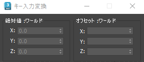 オフになっている場合、[X]、[Y]、[Z]フィールドに入力した値は絶対値として扱われます。3ds Maxオンになっている場合、3ds Max では入力した変換値は、現在の値に対する相対値、つまりオフセットとして適用されます。既定値はオフです。