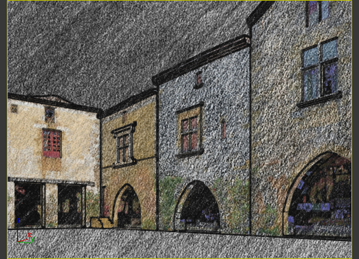 既定のスタイルは、ハードウェア レンダリングの結果に匹敵します。他のスタイルには、従来の媒体を使って(大部分が)手描きされた絵画を模倣する効果があります。以下の図は、模倣できる効果の種類を示しています。