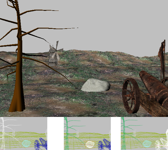 下: ワイヤフレーム ビューポートでのさまざまな選択