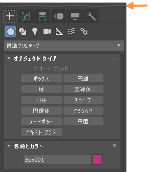 コマンド パネルの上にシーン エクスプローラをスタックする