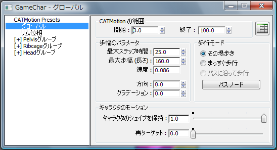 [グローバル](Globals)パネルは、現在の CATMotion レイヤのメイン設定を保持します。