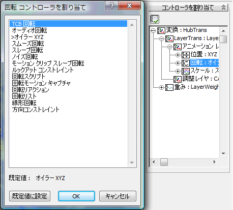 基本的なレイヤ タイプ(Abs、+L、+W)では、新しいコントローラを任意のボーンに割り当て、ボーンの動作を変更したり、キーフレームの補間を変更したりできます。