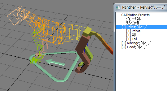 ハブ グループは、常に [CATMotion エディタ](CATMotion Editor)などの CATRig 階層とともに表示されます。ハブ グループ名は、ハブの名前に「Group」を追加したものです。たとえば、「RibcageGroup」のようになります。