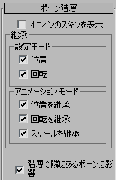 オンにすると、このボーンは階層で隣にあるボーンに影響を与えます。