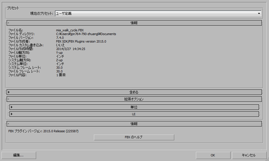 3ds Max FBX plug-in ユーザ ドキュメントを開くには、ヘルプ ボタンをクリックします。