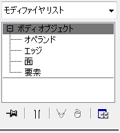 3ds Max でボディ オブジェクト(結合ボディおよびボディ カッター オブジェクトを含む)を操作すると、モディファイヤ スタックでは[オペランド](Operand)、[エッジ](Edge)、[面](Face)、[要素](Element)の 4 つのサブオブジェクト レベルが使用可能になります。