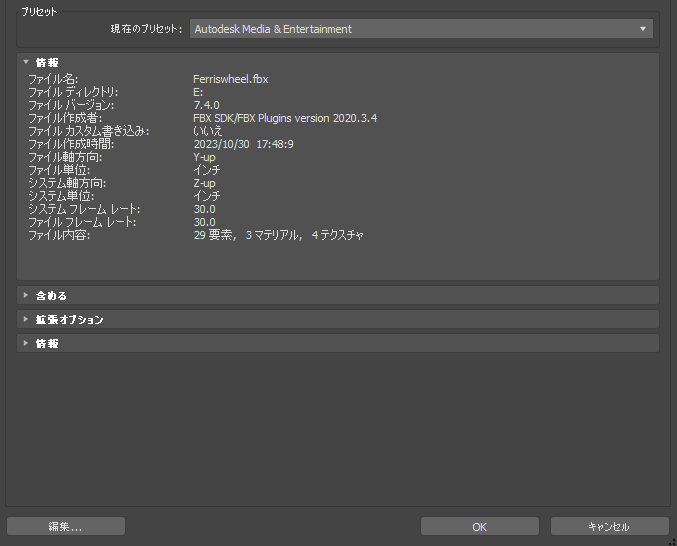 この章では、3ds Max FBX plug-in読み込みウィンドウで使用できるオプションについて説明します。